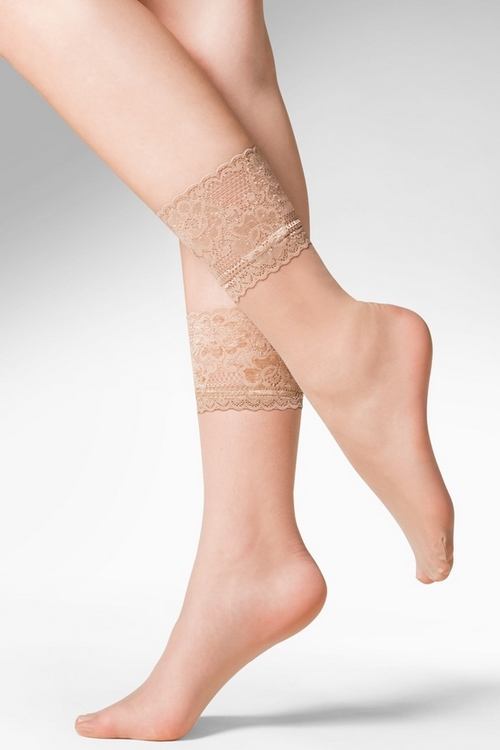 Delikatne i bardzo kobiece skarpetki.Szeroki, koronkowy ściągacz daje gwarancję pewności przy każdym kroku.Włókno Lycra oplecione polamidem użyte w tym modelu sprawia, że skarpetki idealnie przylegają do stopy, nie marszczą się, a wzór nie odciska się na skórze. Brak zaznaczonej części palcowej daje wiele możliwości doboru obuwia.