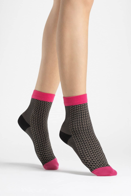 Wzorzyste skarpetki damskie. Grubość 40 den. Skład: 72% poliamid 20% prolen 8% elastan.