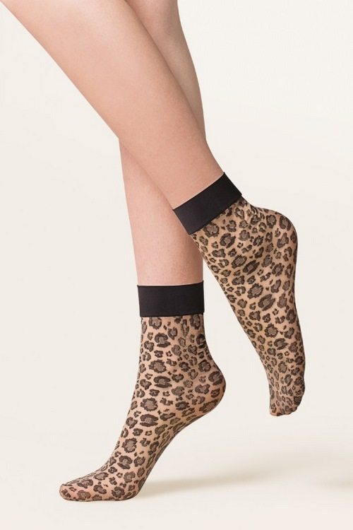 Fantazyjne skarpetki zdobione wzorem w cętki. Skład: 85% poliamid, 15% elastan.