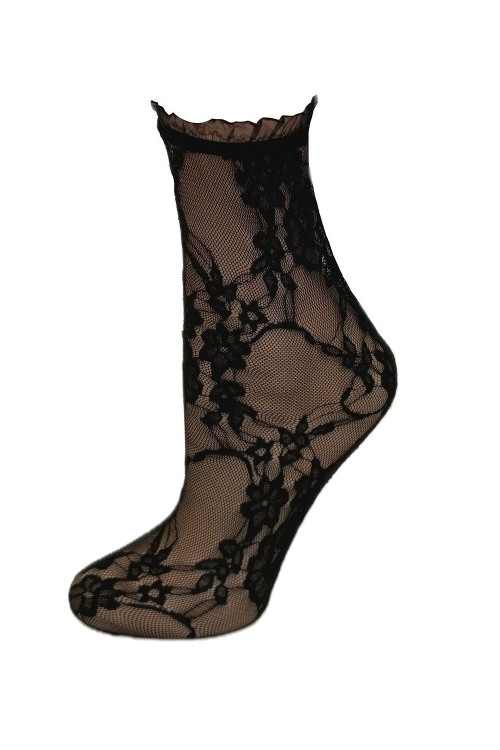 Skarpetki w kwiatowy wzór wykonane z przyjemnej dla ciała, elastycznej koronki. Skład : 90% poliamid 10% elastan.