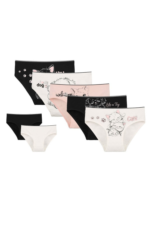 Figi dziecięce mix wzór. Pakowane po trzy sztuki w foliowy woreczek. Skład: 95% bawełna, 5% elastan.