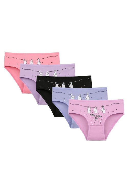Figi dziecięce mix wzór. Pakowane po trzy sztuki w foliowy woreczek. Skład: 95% bawełna, 5% elastan.