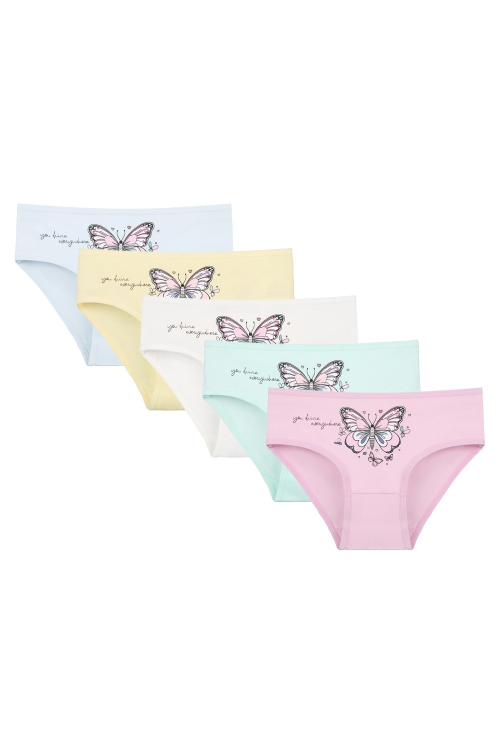 Figi dziewczęce. Pakowane po trzy sztuki mix wzór i kolor w foliowy woreczek. Skład: 95% bawełna, 5% elastan.