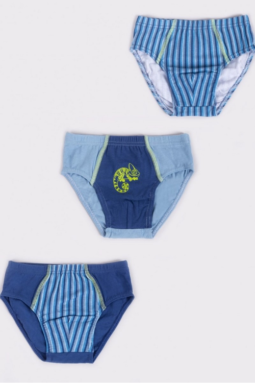 Wzorzyste slipy chłopięce. Pakowane po trzy sztuki w pudełko.Skład: 100% bawełna.