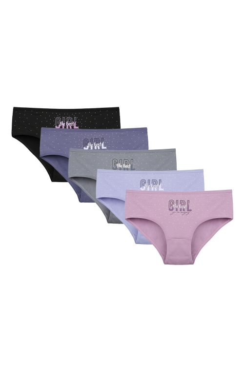 Wygodne i komfortowe figi młodzieżowe z delikatnej bawełny z dodatkiem elastanu. Ozdobione kolorowym nadrukiem. Pakowane po dwie sztuki w foliowy woreczek mix wzór.