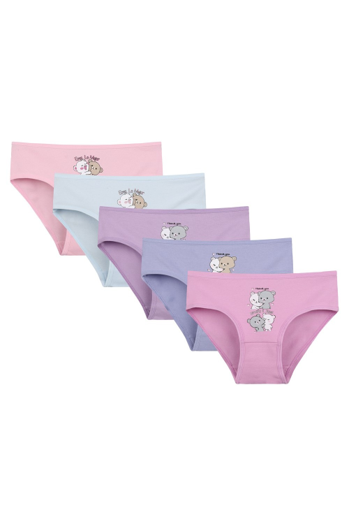 Figi dziewczęce mix wzór. Pakowane po trzy sztuki w foliowy woreczek. Skład: 95% bawełna, 5% elastan.