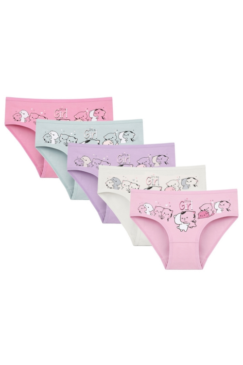 Figi dziewczęce. Pakowane po trzy sztuki mix wzór i kolor w foliowy woreczek. Skład: 95% bawełna, 5% elastan.