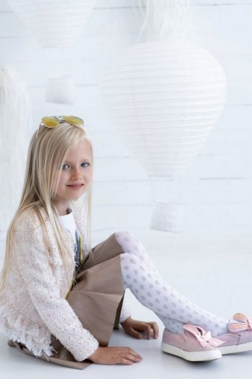 Rajstopy dziewczęce wzorzyste wykonane z mikrofibry w systemie 3D, który zapewnia większą miękkość i elastyczność, lepsze krycie i wygląd. Grubość 50 den. Wszyty klin. Skład: 94% poliamid, 6% elastan.