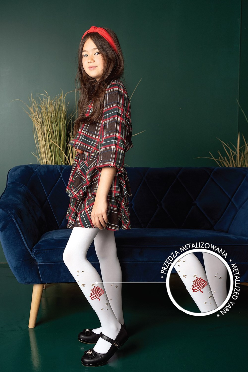 Rajstopy dziewczęce ozdobione nadrukiem o tematyce świątecznej.Skład: 86% poliamid, 11% elastan, 2% polipropylen, 1% poliester.