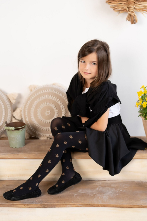 Dziewczęce rajstopy wzorzyste wykonane z przędzy oplatanej gwarantującej zwiększoną wytrzymałość. Zastosowanie systemu 3D sprawia, że rajstopy są bardziej elastyczne i przyjemne w dotyku. Wszyty klin. Skład: POLIAMID 88%, POLIPROPYLEN 7%, ELASTAN 5%.
