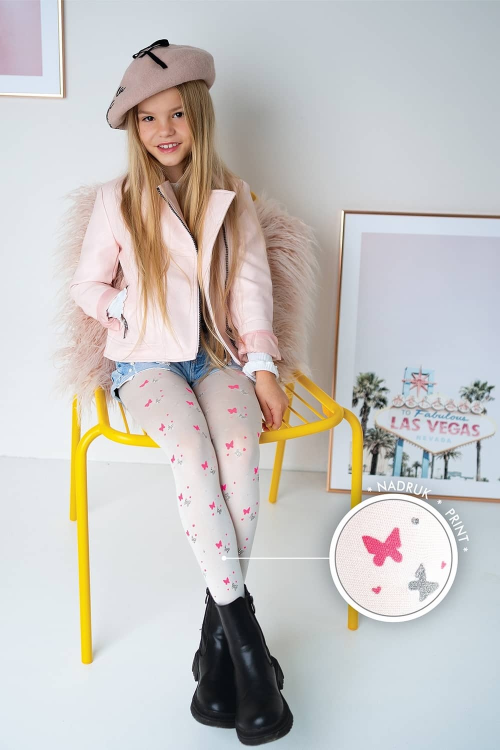Dziewczęce rajstopy wzorzyste z nadrukiem w motylki. Grubość 40 den.