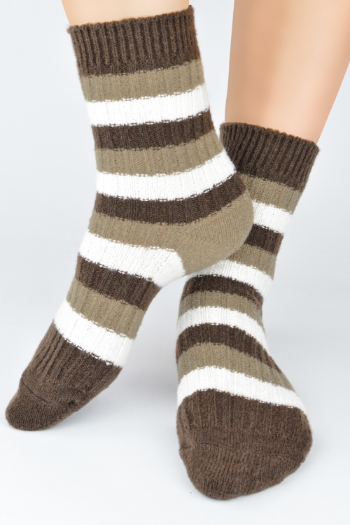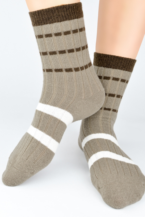 Skarpety damskie. Pakowane w foliowy woreczek po 6 sztuk. Skład: 45% akryl, 40% poliester, 10% wełna, 5% elastan.