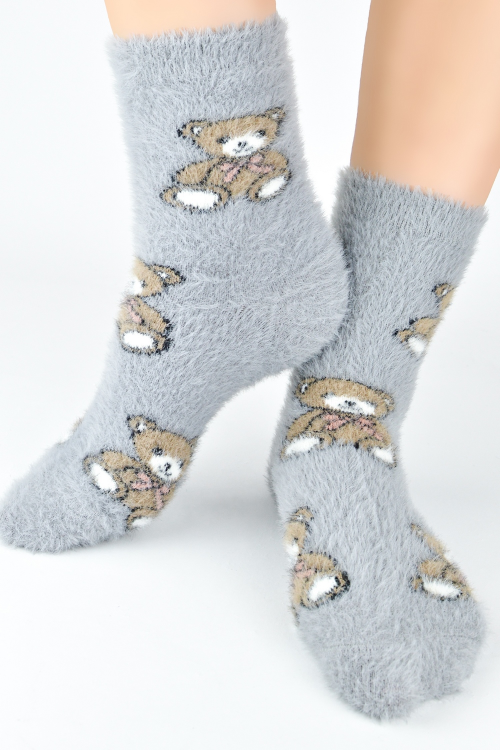Skarpety damskie, miękka puchata dzianina , nieuciskający ściągacz , wzór w misie , idealne na prezent. Skład: 86% poliamid, 12% elastan, 2% elastan.