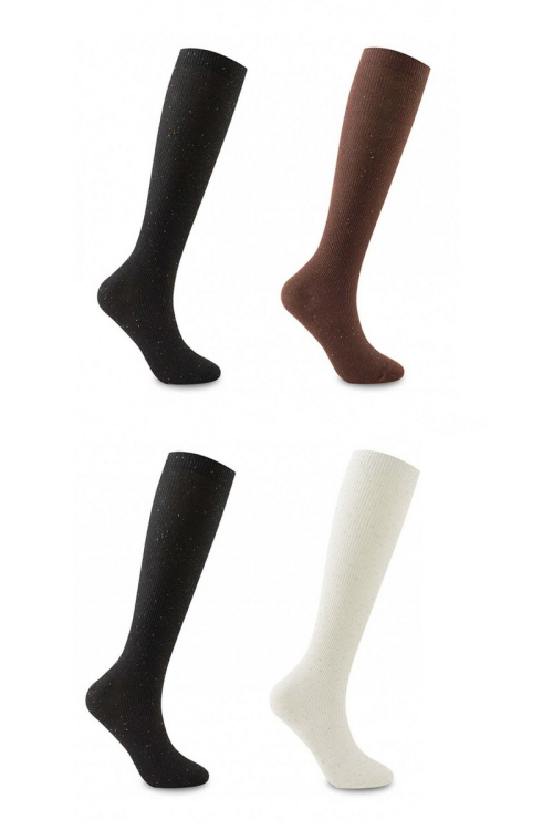 Skarpety damskie prążek, wzór melanż , wykończne bezuciskowym ściągaczem .Występują kolory: m.czarny, m.brąz, m.ecri .Pakowane po 6 mix.