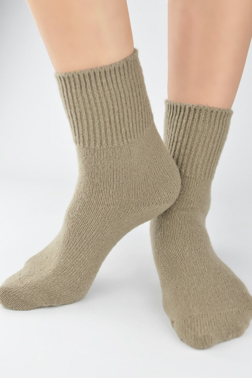Skarpety damskie miękka, puchata dzianina , gładkie, jednolite wygodny, nieuciskający ściągacz. Skład: 45% akryl, 40% poliester, 10% wełna, 5% elastan.