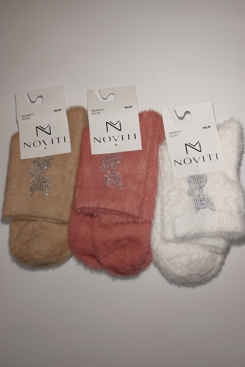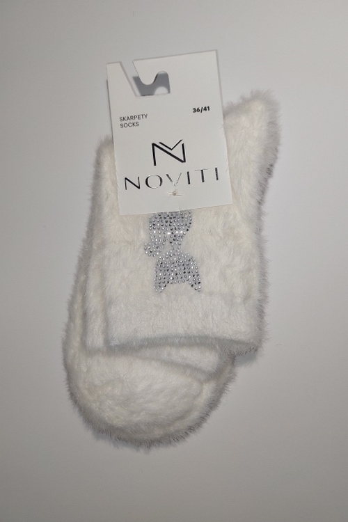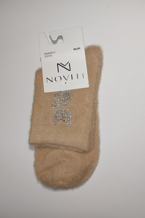 Skarpety damskie miękka, puchata dzianina, gładkie wzór kotek w cekiny, nieuciskający ściągacz. Skład: 95% poliamid, 5% elastan.