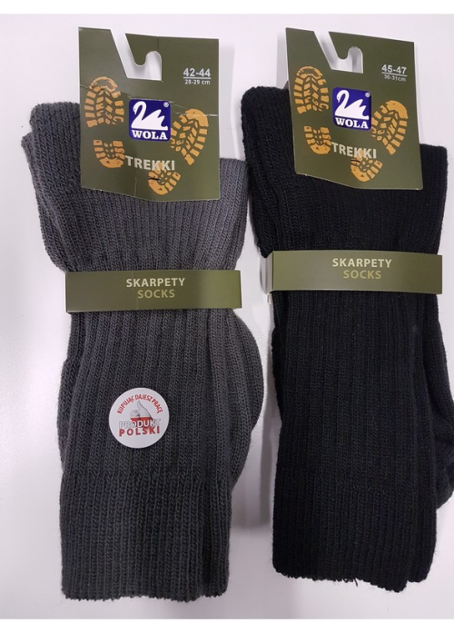 Ciepłe skarpety wełniane. Skarpety z dodatkiem wełny i frotte w spodzie stopy. Doskonale izolują przed mrozem i chłodem. Nie podrażniają skóry, amortyzują stopę. Odporne na ścieranie. Idealne na dalekie wyprawy. Skład procentowy: Akryl 63%, Wełna 30%, Pol