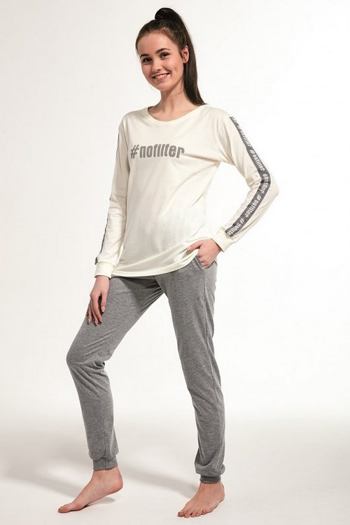 Piżama młodzieżowa z wysokiej jakości bawełny. Koszulka z andrukiem z długimi rękawami. Spodnie długie, jednolite z kieszeniami. Pakowana w pudełko.Skład: koszulka 100% bawełna; spodnie 92% bawełna, 8% poliester.