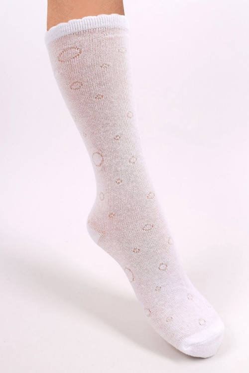 Podkolanówki dziewczęce , miękka dzianina , subtelny ażurowy wzór, dostępne w kolorze białym z różnymi, ażurowymi wzorami - wybierane losowo . Skład: 75% bawełna, 22% poliamid, 3% elastan.