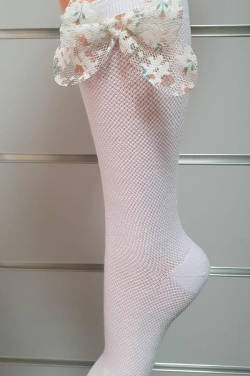 Podkolanówki Milusie B5133 bawełna ażur z aplikacją 7-12