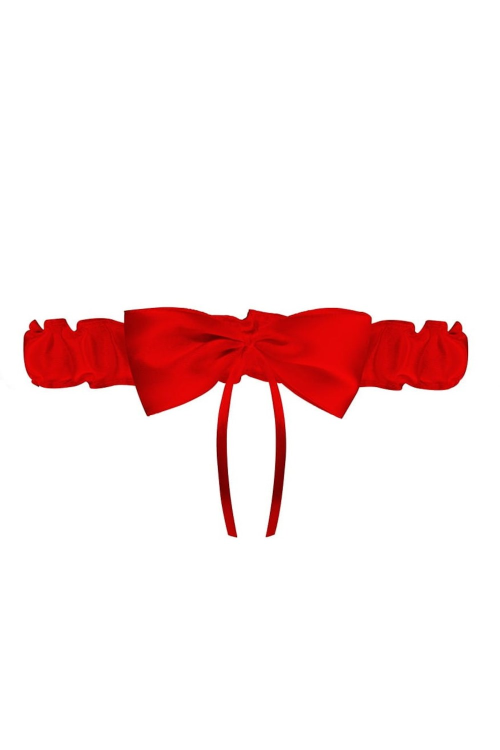 Satynowa, wąska podwiązka w kolorze czerwonym, zdobiona czarną kokardką z czerwoną różyczką. Skład: 100% poliester.