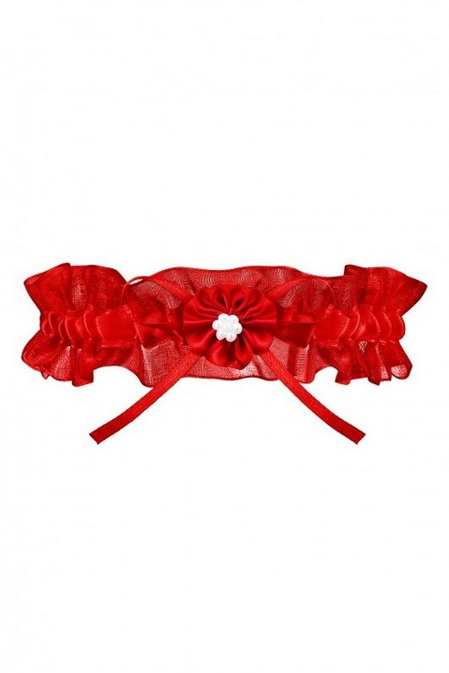 Podwiązka w kolorze czerwieni, starannie wykonana z dwóch warstw subtelnego tiulu.Skład 100% poliester.