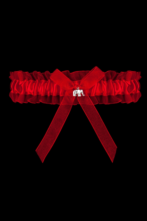 Podwiązka z kokardką i przywieszką w postaci srebrnego słonika.