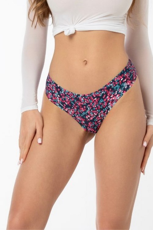 Kolorowe figi damskie , o kroju brazylian ultracienkie wykończenie brzegów w technologii INVISIBLE_LINE , krój odsłaniający pośladki . Pakowane w pudełko. Skład: 89% poliamid, 10% elastan, 1% bawełna.