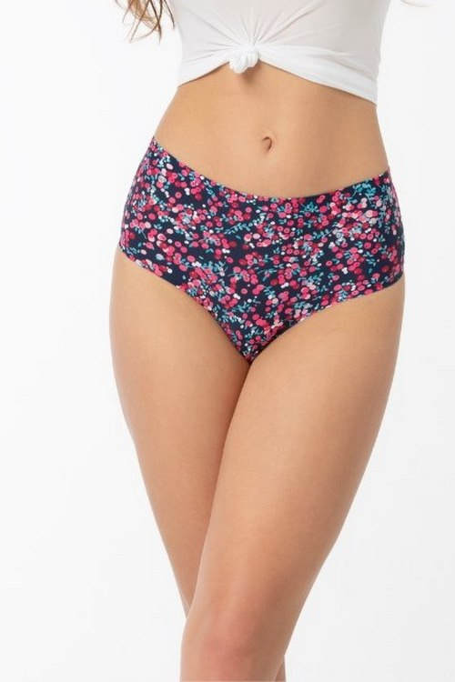 Kolorowe figi damskie maxi , o kroju brazylian ultracienkie wykończenie brzegów w technologii INVISIBLE_LINE , krój odsłaniający pośladki . Pakowane w pudełko. Skład: 89% poliamid, 10% elastan, 1% bawełna.