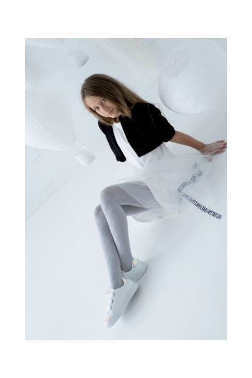 Rajstopy dziewczęce z motywem geometrycznym. Skład: 94% poliamid, 6% elastan.