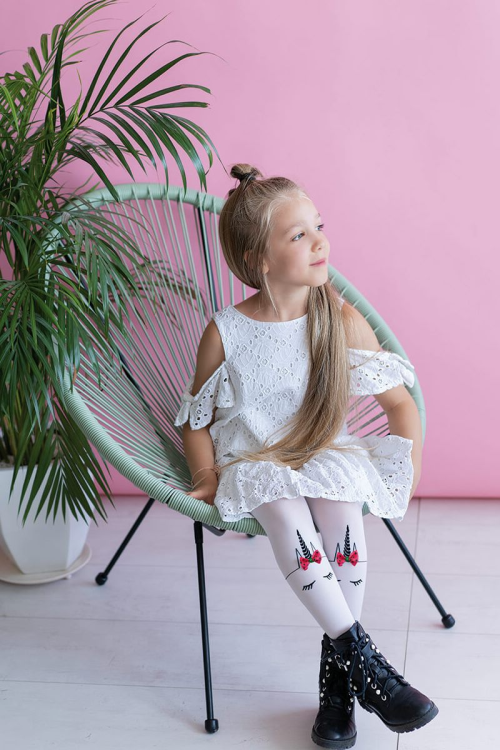 Dziewczęce rajstopy wzorzyste wykonane z mikrofibry z doszytą aplikacją w postaci kokardek. Skład: 89% poliamid, 11% elastan.