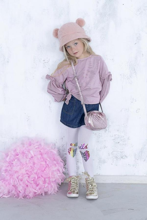 Dziewczęce rajstopy wzorzyste z kolorowym serduszkiem. Skład: 95% poliamid, 5% elastan.