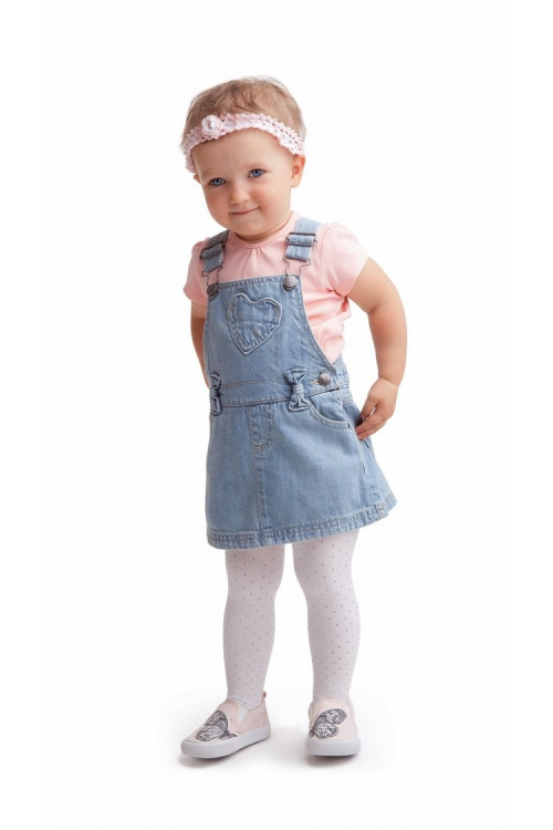Rajstopy dziewczęce ozdobione połyskującym wzorem w kropki. Wykonane z delikatnej mikrofibry o grubości 40 den. Wyjątkowo miękkie i elastyczne. Skład: 94% poliamid, 6% elastan.