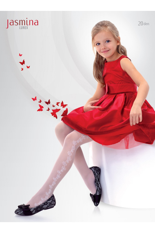 Dziewczęce rajstopy wzorzyste z dodatkiem lurexu. Wykonane z przędzy typu elastan. Przezroczyste, półmatowe.Okoliczność: Komunia Skład: 88% Poliamid, 10% Elastan, 1% Bawełna, 1% Włókno metalizowaneGrubość: 20 den