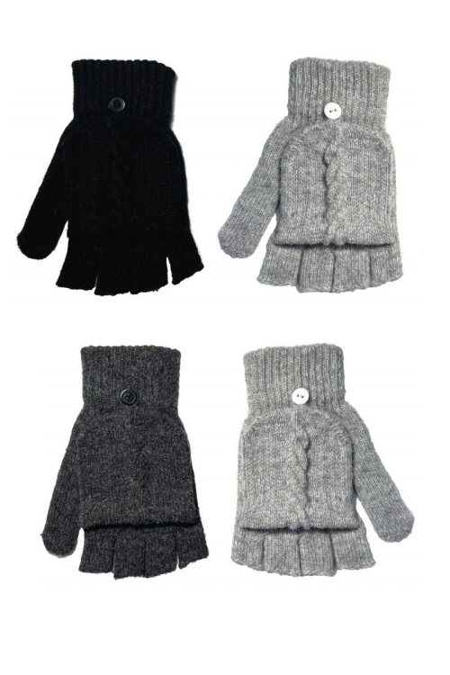 Pięciopalczaste rękawiczki damskie z funkcją odsłaniania palców. Dostępne kolory: grafitowy, czarny ,szary.Opakowanie 6 mix kolor. Skład: 90%poliester, 10% elastan .