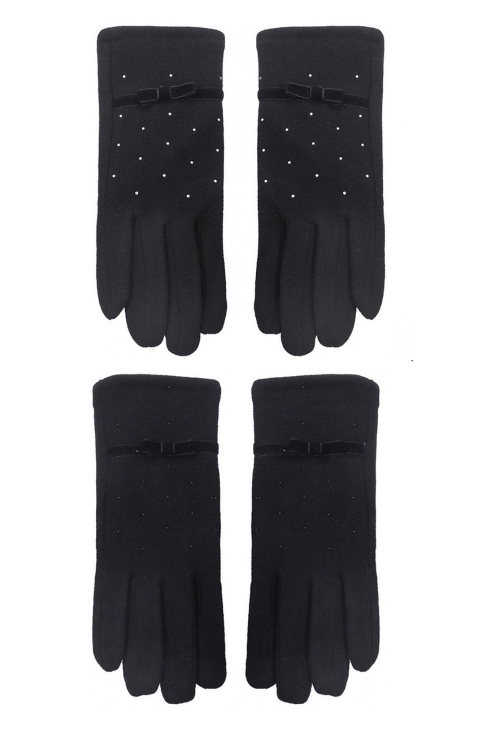 Rękawiczki damskie 5 palczaste z przyjemnej dzianiny idealne na chłodne dni z ozdobnymi cekinami , przeznaczone do ekranów dotykowych. Opakowanie 6 par .Dostępne kolory:czarny. Skład:100% poliester.