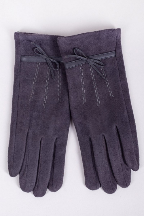 Rękawiczki damskie grafit 5P zamsz wstążka dotyk 23 cm