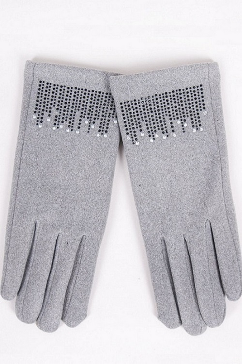 Rękawiczki damskie z jettami na dotyk, kolor : szary.