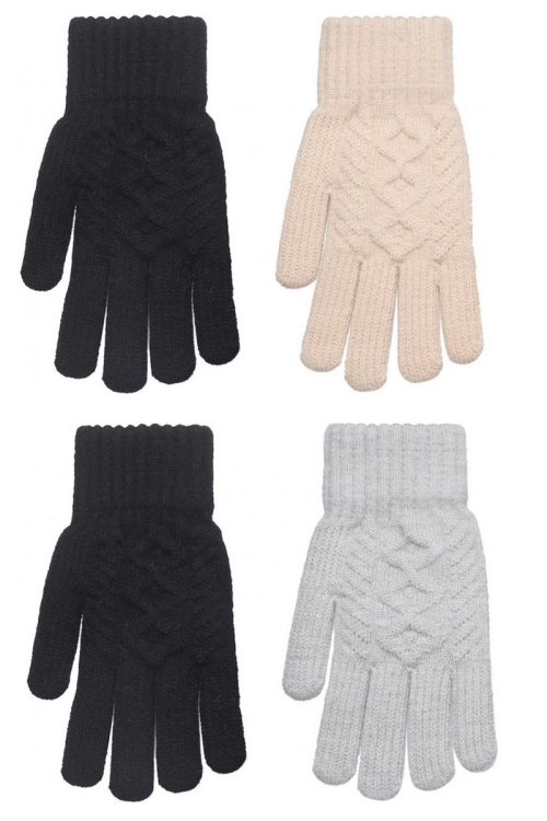 Rękawiczki damskie wzór wytłaczany. Skład: 85% akryl, 15% elastan.