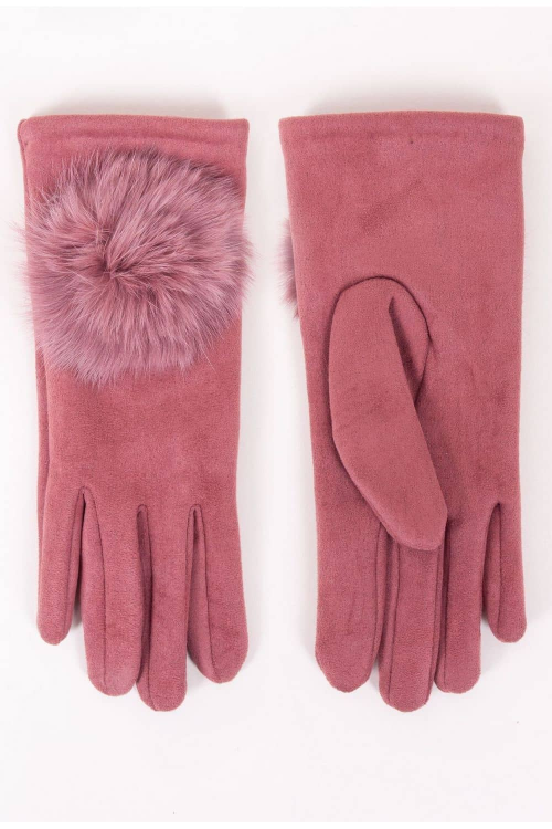 Rękawiczki YO! damskie zamszowe z pomponem R-059