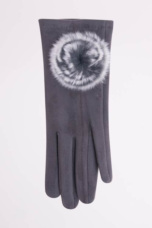 Rękawiczki YO! dziewczęce zamszowe + pompon RS-003