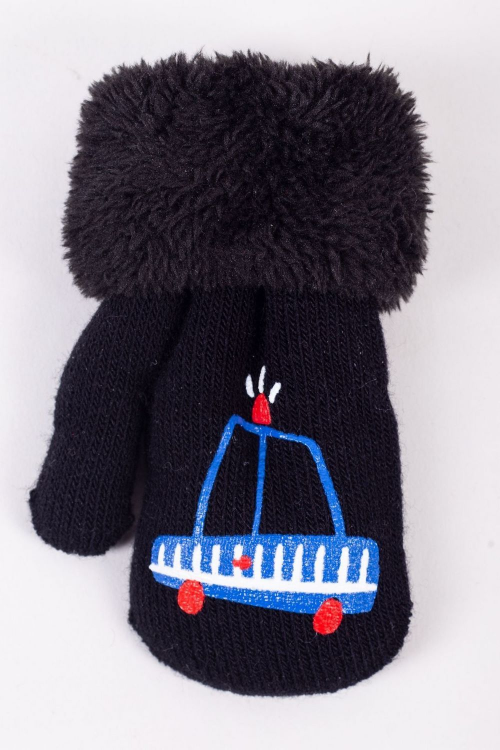 Rękawiczki dziecięce chłopięce ocieplone futrem ze sznurkiem ABS.