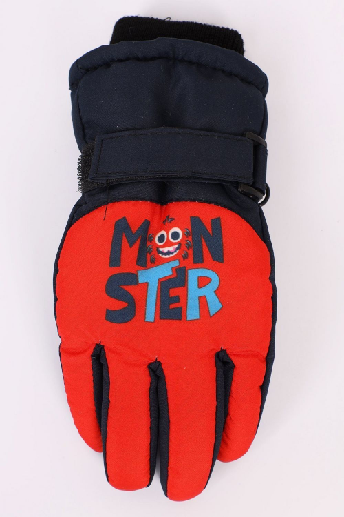 Rękawice narciarskie, chłopięce, pięciopalczaste od wewnątrz ocieplone , przy nadgarstku elastyczny ściągacz i pasek na rzep na wnętrzu dłoni teksturowany materiał zapewniający przyczepność. Skład: 100% poliester.