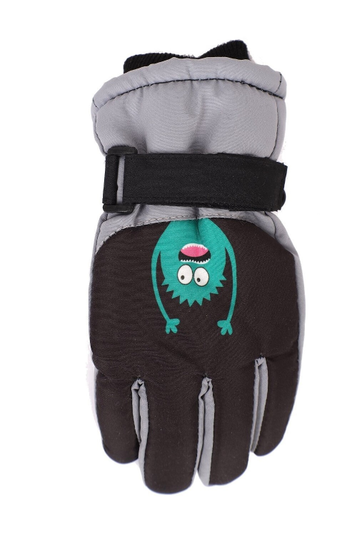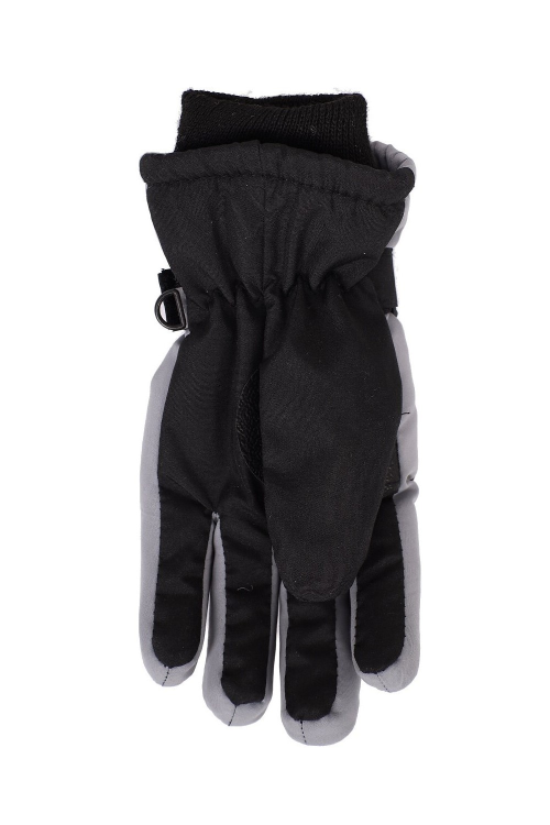 Rękawice narciarskie, chłopięce, pięciopalczaste od wewnątrz ocieplone , przy nadgarstku elastyczny ściągacz i pasek na rzep na wnętrzu dłoni teksturowany materiał zapewniający przyczepność. Skład: 100% poliester.