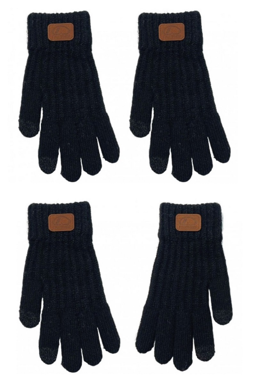 Rękawiczki młodzieżowe pięciopalczaste z naszywką. Stanowią doskonałą ochronę przed zimnem. Dostępne kolory: grafitowy, czarny, . Opakowanie 6 mix kolor.Skład: 77% akryl, 20% poliester, 3% elastan