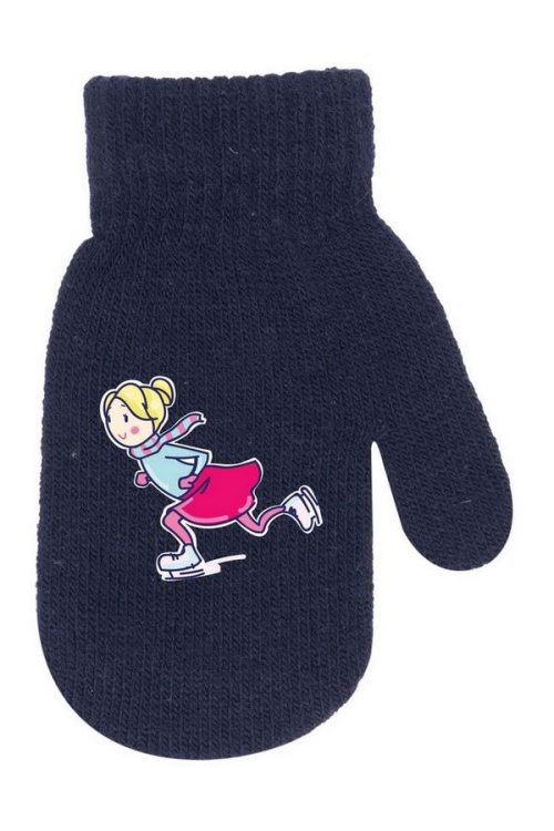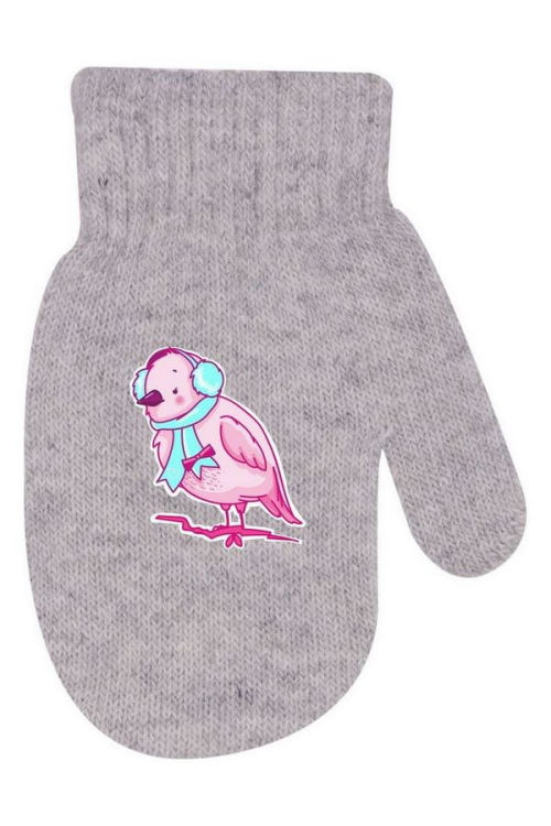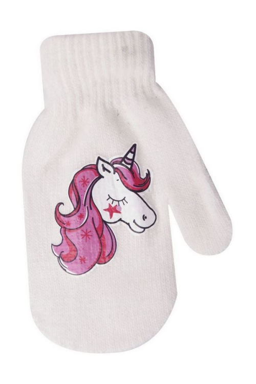 Rękawiczki dziecięce wełnianie z naklejką i sznurkiem. Skład: 70% poliester, 15% akryl, 10% elastan, 5% wełna.