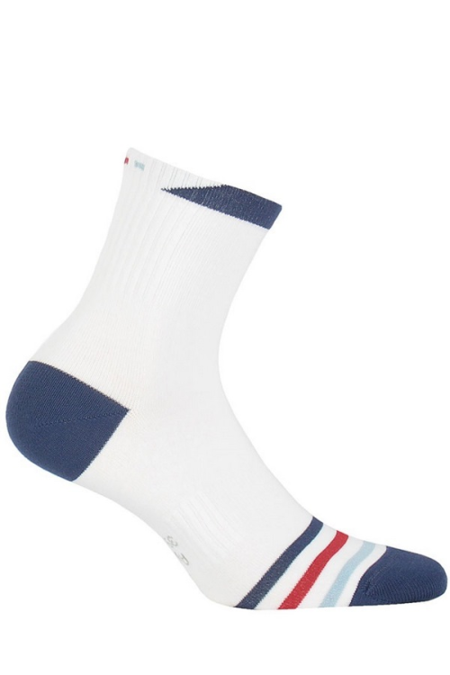 Skarpetki sportowe bawełniane krótkie z jonami srebra. Skład: 74% bawełna, 19% polipropylen, 4% poliamid, 3% elastan.