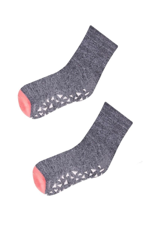 Skarpety sportowe, płaskie szwy, wzmocnione palce i pięta. Podeszwa z ABS. Skład: 97% poliester, 3% elastan.