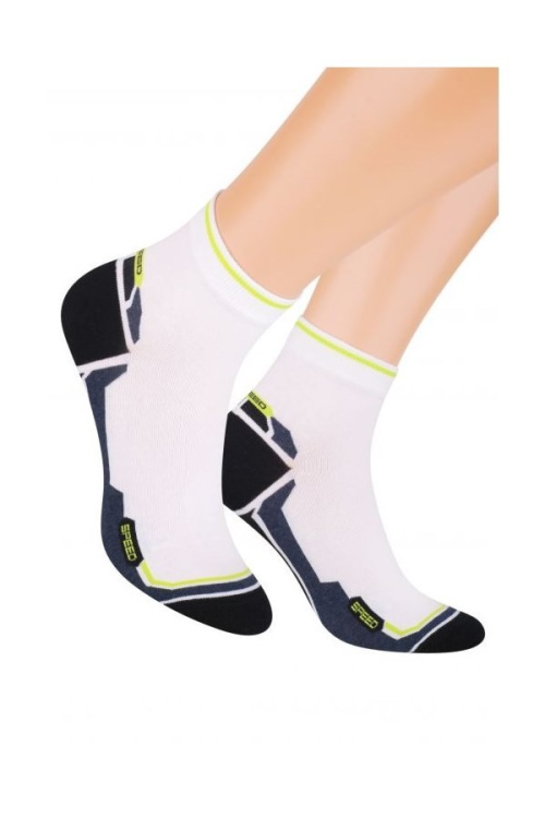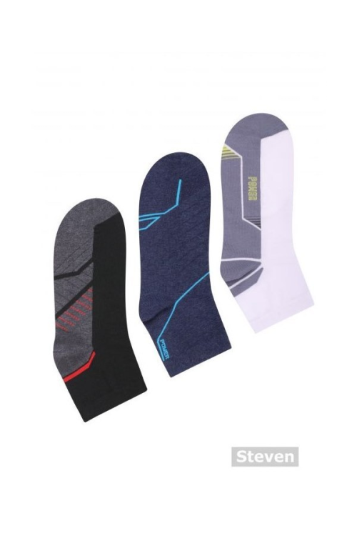 Zakostki męskie z bawełny z dodatkiem lycry. Płaskie szwy, nieuciskający ściągacz. Oryginalne wzornictwo doskonale komponuje się ze sportowym stylem życia. Dostępne kolory: białe i czarne - jednolite oraz mix kolor - mix wzór: białe, grafitowe, granatowe,