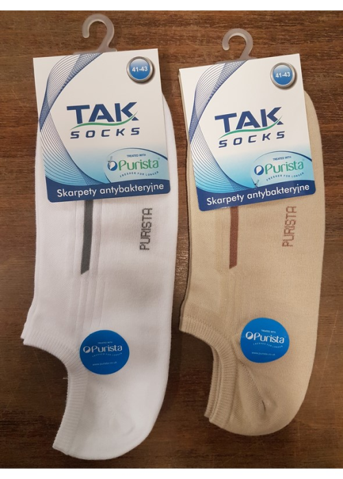 Stopki męskie krótkie wykonane z najwyższej jakości bawełny czesanej z dodatkiem specjalnej apretury antybakteryjnej PURISTA™ z nowej kolekcji TAK Fresh.Stopki PURISTA™ są miękkie, delikatne dla skóry, miłe i przyjemne w dotyku.Stopki krótkie są w